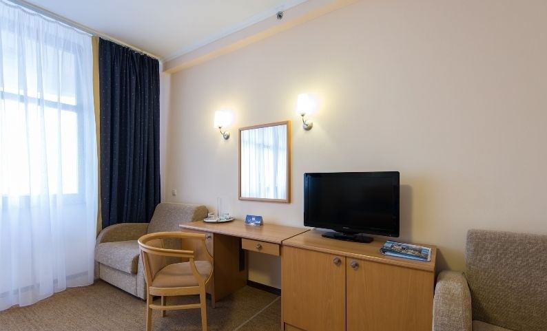 Также в наличии: телефон, телевизор, двуспальная кровать и кресла-кровати.